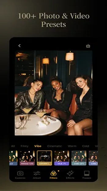 Además de aplicar filtros, permite ajustar brillo, contraste y color en tiempo real. Para usuarios avanzados, incluye soporte RAW y controles manuales de ISO, exposición y enfoque. También admite diferentes proporciones de imagen, lo que facilita su uso en redes sociales.